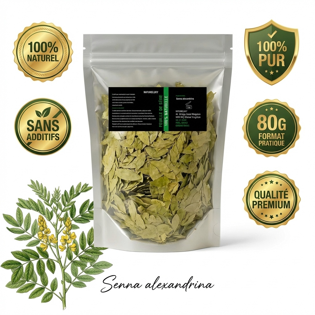 La feuille de séné, aussi appelée « sana makki », est une plante médicinale utilisée comme puissant laxatif. Natureluxy Shop vous propose des feuilles de séné 100% naturel à l’achat en sachet de 80g.