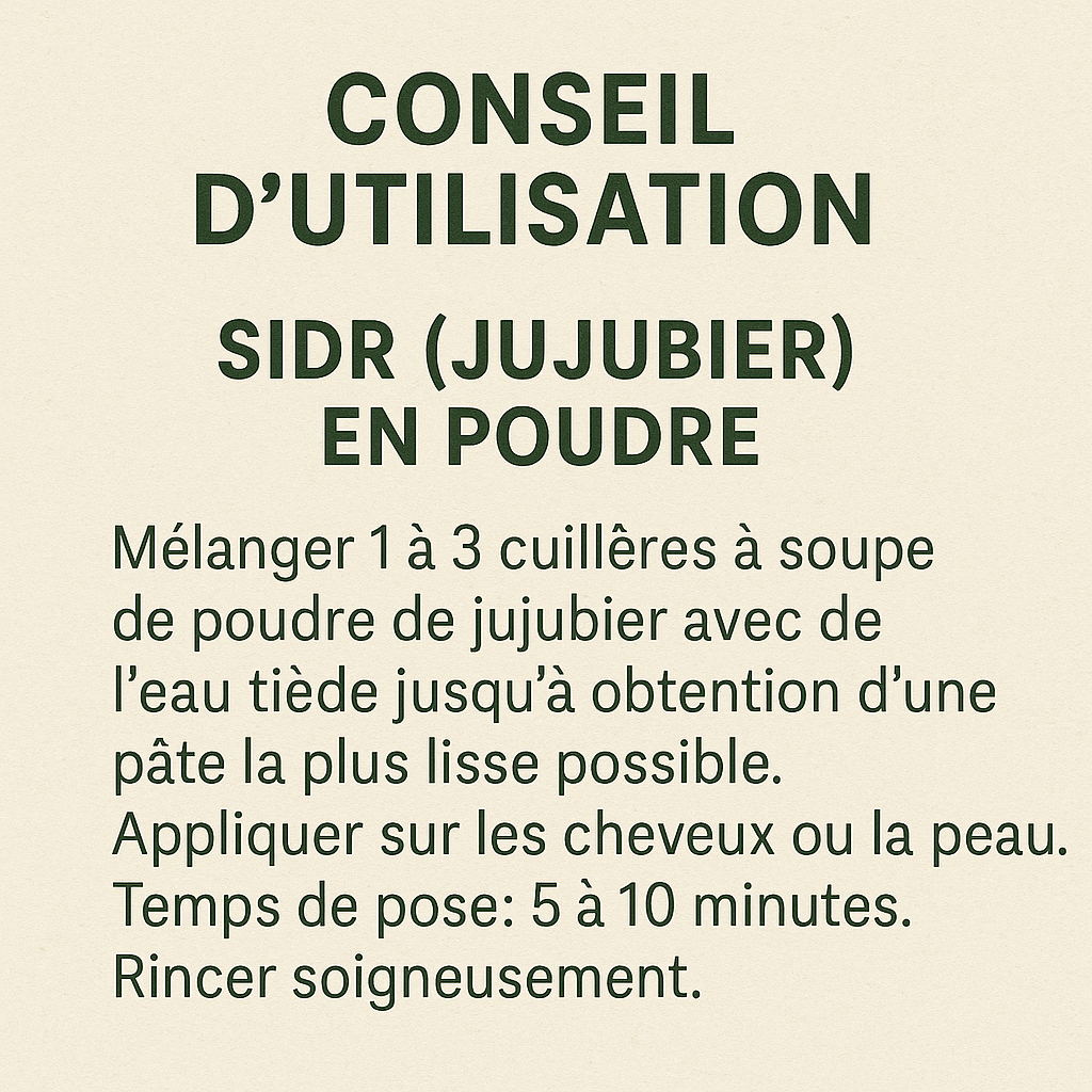 Le Jujubier est un ingrédient de choix dans les shampoings végétaux en pâte. Incorporé à vos préparations, il lave, embellit et apporte du volume aux cheveux. Il présente l'avantage de laver les cheveux qui ont été colorés (notamment avec de l'Indigo ou du Katam) sans les faire dégorger et en fixant la couleur. Riche en mucilages et astringente, cette poudre est également utilisée dans les soins des cuirs chevelus inconfortables et pour lutter contre les pellicules.