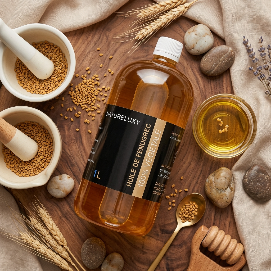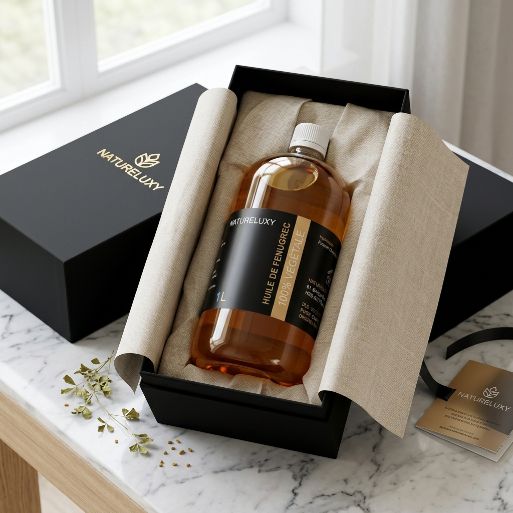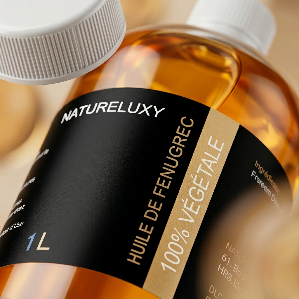 Unser Bockshornkleeöl, vertrieben von NatureLuxy Shop, in 1-Liter-Flasche. Bitte beachten Sie, dass wir ein sehr umfassendes Sortiment an Bockshornkleeöl in verschiedenen Formaten haben, beispielsweise Bockshornkleeöl in 250 ml .
