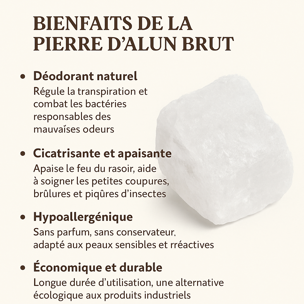 ALUMSTEIN ist der echte Mineralkristall aus natürlichen Steinbrüchen im Atlas. Es ist 100 % NATÜRLICH.