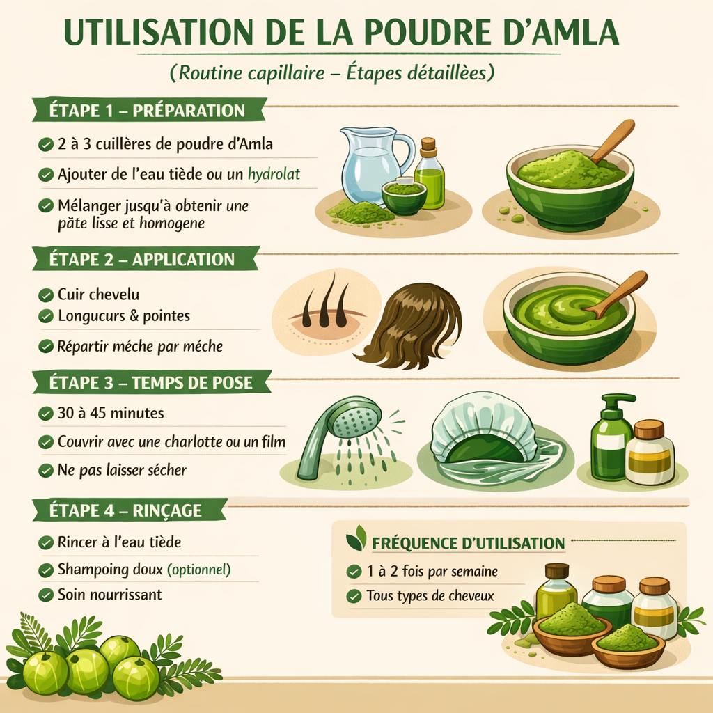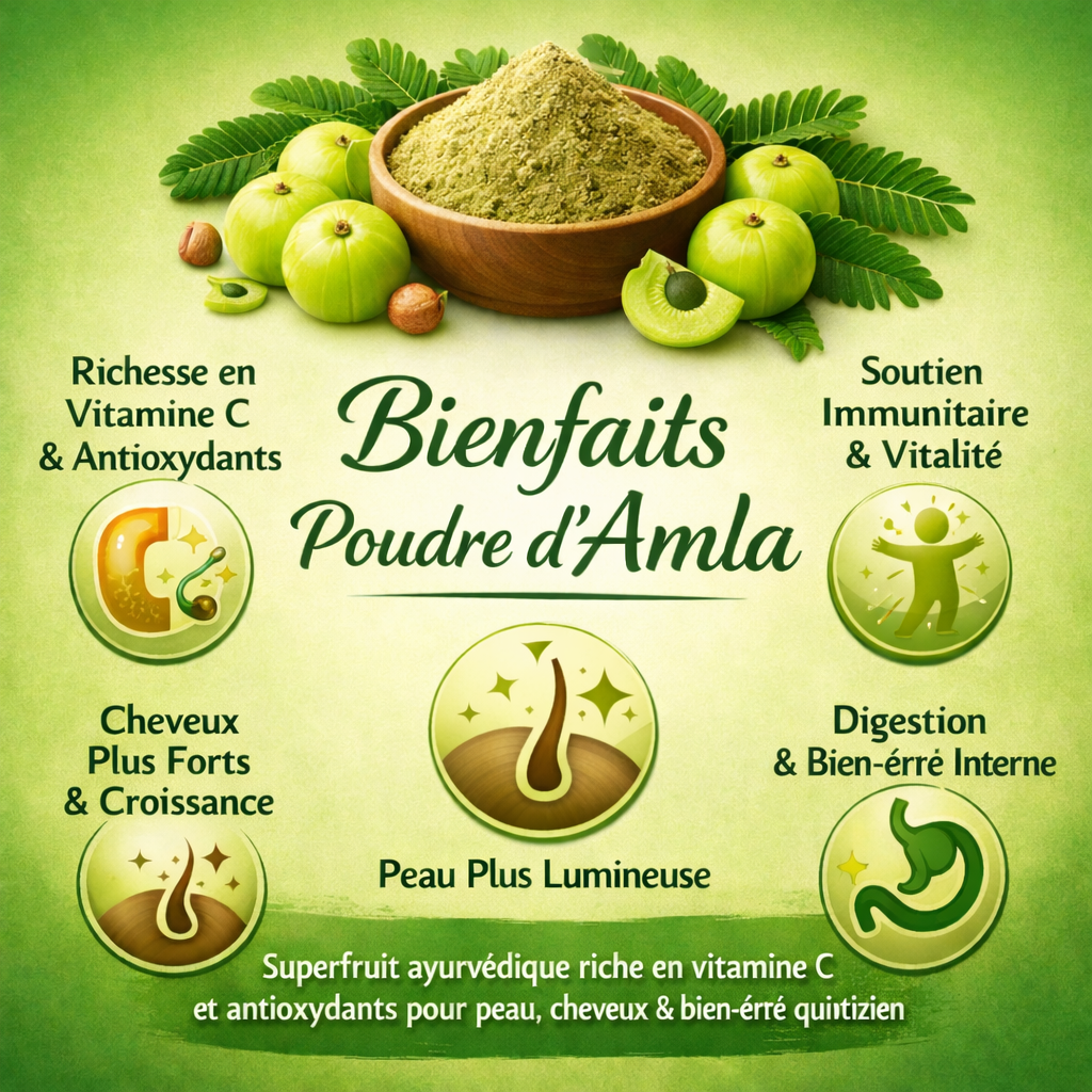 La poudre d'Amla (Phyllanthus emblica), aussi appelée "groseille à maquereau indienne", est un secret de beauté ancestral de l'Ayurvéda. Ce soin multi-usage est indispensable pour la santé des cheveux et l'éclat de la peau.
