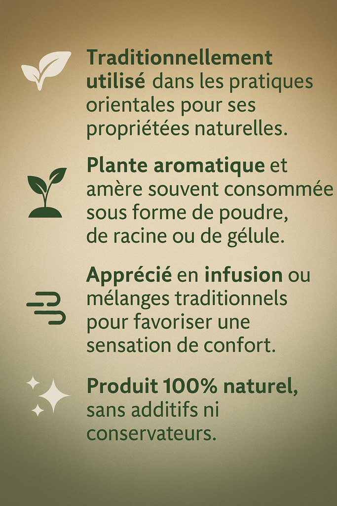 De plus, le costus indien en capsules est réputé pour ses nombreuses propriétés, ce qui en fait un allié précieux pour lutter contre les problèmes de peau. Il aide également à apaiser les gênes de la peau, laissant la peau douce et apaisée.