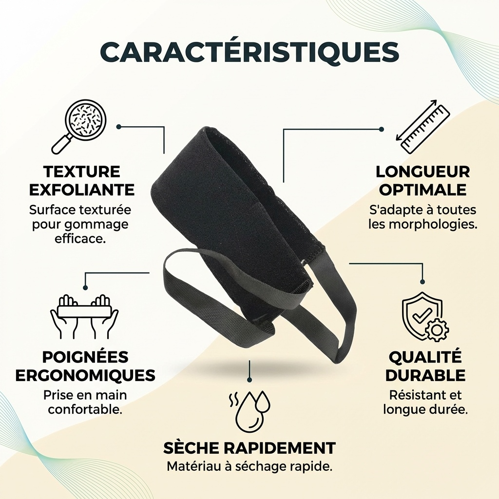Ce gant de crêpe traditionnel marocain et granuleux vous permet de "raper" la peau pour éliminer les impuretés et gommer le cou, les épaules, les bras, les hanches, le ventre, les jambes et les pieds.