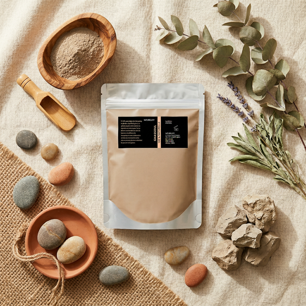 Découvrez l’argile ghassoul en poudre ultrafine 1 kg, une argile minérale d’origine marocaine traditionnellement utilisée dans les soins de beauté. Aussi appelée rhassoul ou argile lave du Maroc, elle s’utilise en masque visage, en soin corps et en masque capillaire. Sa texture fine permet une préparation simple et agréable, adaptée à une routine de soin naturelle.