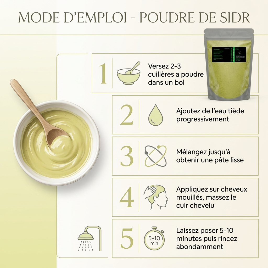 Le Sidr est un ingrédient naturel utilisé traditionnellement dans différentes cultures pour les soins capillaires et corporels. Il contient naturellement des saponines (agents nettoyants naturels).